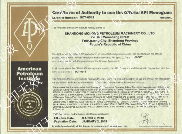 API认证证书APISpec5CT(油管套管)